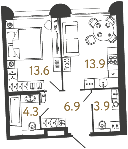 Дополнительная – в 4-ой секции (36,1 м2). Сюда можно попасть только из внутреннего двора дома.